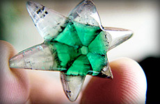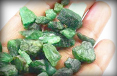 LA ESMERALDA Es una gema muy dura que toma su verde característico por del cromo en su composición. Las esmeraldas de gran tamaño que no posean impurezas y que sean talladas por especialistas pueden llegar a tener un costo superior al de un diamante. Se trata de una de las gemas por antonomasia, de gran valor y sumamente bella y su nombre se ha convertido incluso en una manera de designar un tono específicamente brillante de verde, el verde esmeralda. A veces la coloración está distribuida irregularmente, o en paralelo a las caras principales del cristal. Entre los distintos tipos de esmeraldas ,hay algunos con características muy peculiares, como por ejemplo las esmeraldas que presentan el fenómeno llamado ¨esmeralda ojo de gato¨ y las llamadas esmeralda trapiche. GEMOLOGÍA Especie: Berilo.